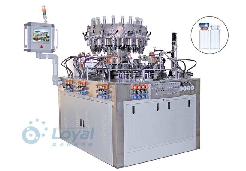 西林瓶生產(chǎn)線包括:自動(dòng)上管、自動(dòng)成型、經(jīng)機(jī)械手轉(zhuǎn)換至前端檢測線(也叫生產(chǎn)管控)、檢測線檢測的項(xiàng)目:1、瓶口內(nèi)外徑 2、瓶身長短 3、瓶身外徑 4、瓶口邊厚 5、瓶底內(nèi)凹尺寸檢測;經(jīng)檢測后的合格品再用機(jī)械手夾盤轉(zhuǎn)換至退火爐網(wǎng)帶上,經(jīng)高溫減除應(yīng)力后再降溫,通過氣動(dòng)吸盤將回火后的小瓶轉(zhuǎn)換至后端檢測線,后端檢測(也是重檢也叫終檢),經(jīng)后端拍照檢測項(xiàng)目